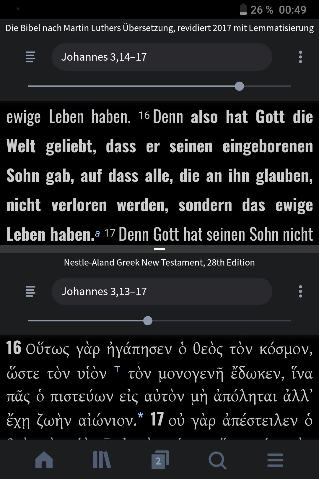 Was mich persönlich sehr begeistert, ist die neu entwickelte App. Im direkten Vergleich zur Vorgängerversion ist sie nicht nur schneller, sie hat auch umfangreichere Funktionen. Der Bibelstellenscanner erstellt nun direkte Verknüpfungen zu einer Versliste. Man kann also Bibelstellen auf einem Blatt Papier abfotografieren und sie direkt danach in Logos analysieren. Spannend, wenn man beispielsweise ein Handout von einem Bibelabend nacharbeitet.